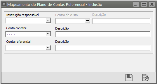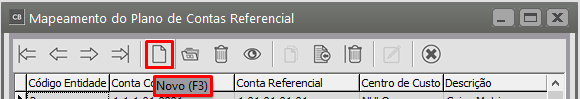 Para cadastrar novo mapeamento, clique no ícone "Novo" ou acesse o menu de cadastro (Manutenção>Plano de Contas>Referencial>Mapeamento>Cadastra)