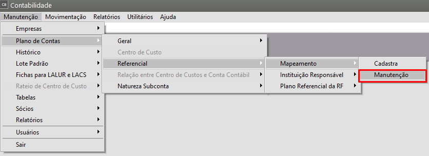 Correção: Acesse o menu Manutenção>Plano de Contas>Referencial>Mapeamento>Manutenção